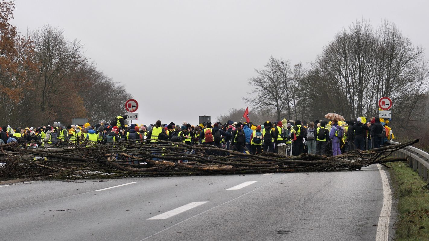 In der „Hessenschau“ des Hessischen Rundfunks heißt es beschönigend: „Die Proteste nehmen Fahrt auf“, als eine Autobahn gesperrt werden muss, nachdem sich Extremisten von einer Brücke abgeseilt hatten. Ein Aktivist verteidigt die Sitzblockaden und ereifert sich über deren Auflösung. Die Polizei habe so der „faschistischen AfD-Jugend“ den Weg zum Veranstaltungsort gebahnt. Dass der interviewte Aktivist, gebürtig in Ghana, sich auf kommunaler Ebene für die Grünen engagiert, verschweigt die „Hessenschau“.