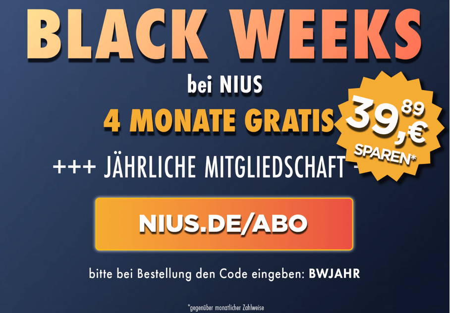 NIUS BLACK WEEK: Bis zu 4 Monate gratis im Insider jährlich sichern