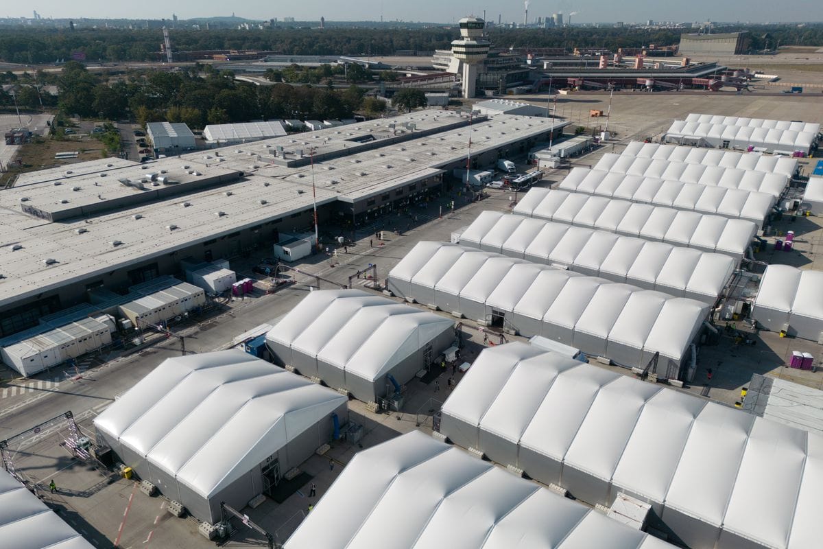Am Terminal C des Flughafens TXL ist eine Zeltstadt für Migranten entstanden